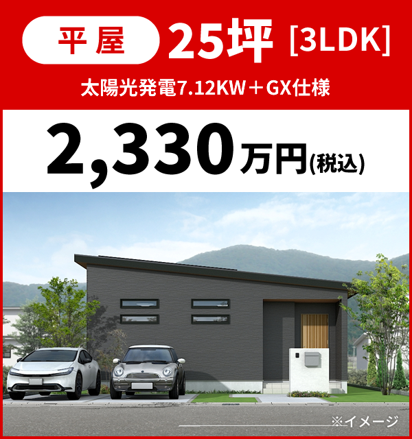 新築セットプランの建物価格は参考価格です。土地代金と建物価格以外に、契約事務手数料や外構工事を含む付帯工事費用が必要です。また、土地の条件によっては、建築できない場合や土地の上物解体費用や造成工事に費用がかかる場合があります。予めご了承ください。